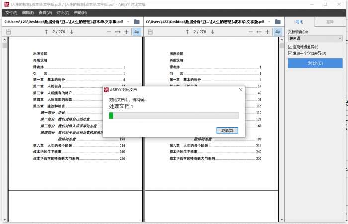 5、添加完成后,点击【对比】就可以,耐心等待ABBYY FineReader对比完成