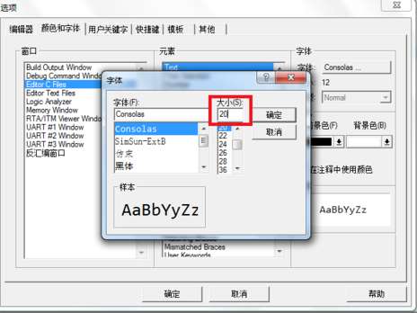 keil uvision2怎么改字体大小