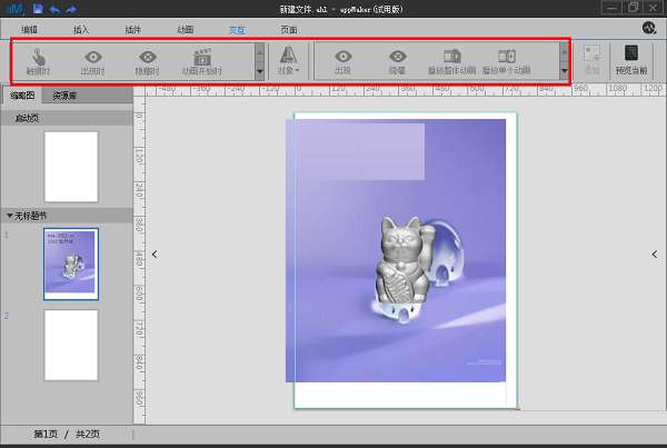 如下图标示的地方,可以对用户在使用该app相应触发事情的设置,例如触摸时、出现时、动画开始时等等