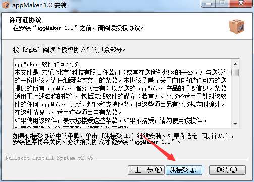 1、点击“appMaker.exe”开始正式安装,在弹开的界面中点击“下一步”
