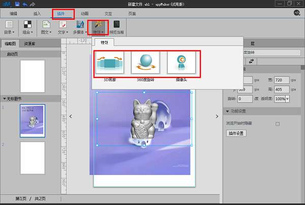 1、点击“插件”—“特效”,即可插入相应的特效