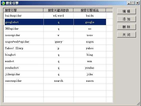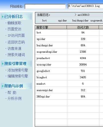 搜索引擎蜘蛛可以自由添加,除统计每个蜘蛛访问了多少次外,还统计每个蜘蛛访问了那些页,访问时间;如果对同一个网页访问了多次,还可以知道首次访问时间和最后离开时间。