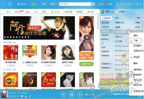 2、在下图中右侧的歌曲列表中,我们右键点击想要下载的歌曲,然后会弹出菜单栏,有播放、下载、添加到、删除等多种选项,我们需要点击下载按钮,将这首歌下载下来。