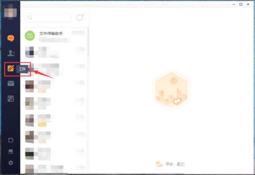 接着进入纷享销客首页,点击左方菜单中的“工作”图标进入;