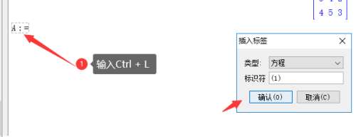 点击回车,创建矩阵,在后面的标号为对应的矩阵,现在将矩阵赋予变量A.使用:=,快捷键Ctrl + L添加(1)