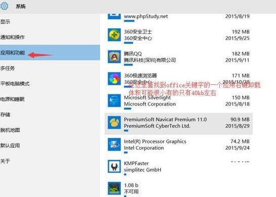 2、在应用里面找到office 关键词的一个应用,点击卸载(因为我没有截图所以只告诉大家大概位置)