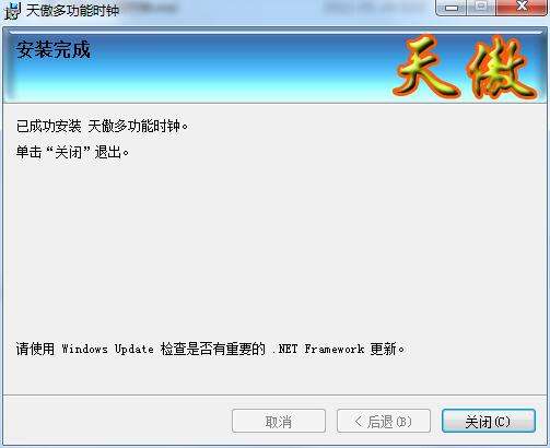 8.天傲多功能时钟安装完成,单击关闭退出安装向导