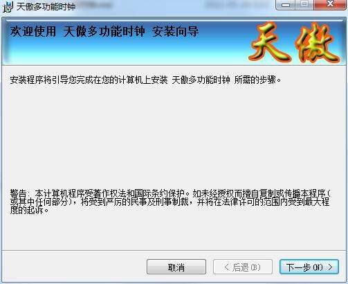 1.在PC下载网下载天傲多功能时钟官方版安装包,解压后,双击exe程序,进入安装向导,单击下一步