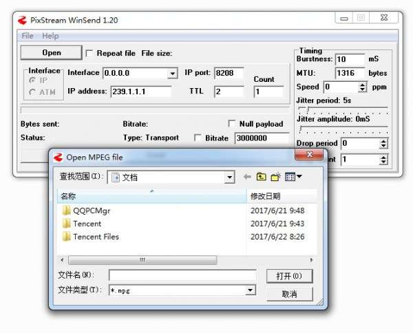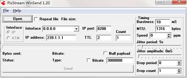 PixStream WinSend是一款操作简便的以把本地文件发送成流推送到组播地址的组播测试软件。PixStream WinSend还可以用来发送TS流,播放流文件时,要注意选择H264的ts文件,使用VLC打开组播IP及端口号。网络交换机或者路由器的udp需要开启。