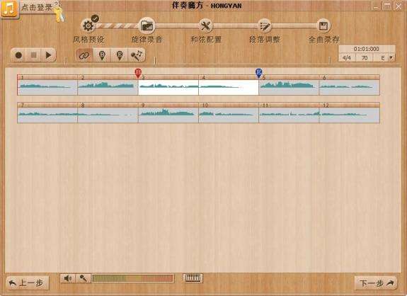 操作:除了便捷高效的处理模式之外,我们还为大家提供了人工修改的各项参数的功能,使大家可以根据自己的音乐喜好做出各种风格的编曲伴奏。