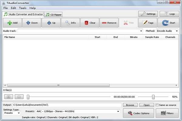 从所有流行的音频格式转换为MP3、WAV、FLAC、OGG、AAC、AC3、OPUS、MPC、APE、TTA、TAK等。它还能够从视频文件中提取音频流,并对其进行编码(它可以对有一个以上音频流的视频文件进行编码),使用多达16个同时进行的进程,将提供快速的编码时间,甚至是一个CD开膛手。TAudioConverter使用其他几个第三方工具,如FFMpeg、QAAC、MediaInfo、FLAC、OpusEnc、MAC、TTA、WMAEncoder、WavPack等。该程序有两种版本:安装程序(设置文件)和便携式版本。