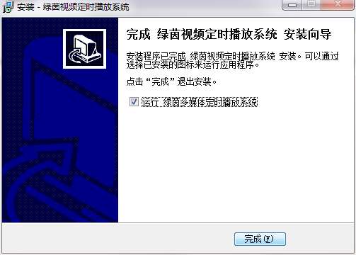 8.点击完成,绿茵视频定时播出系统软件安装成功