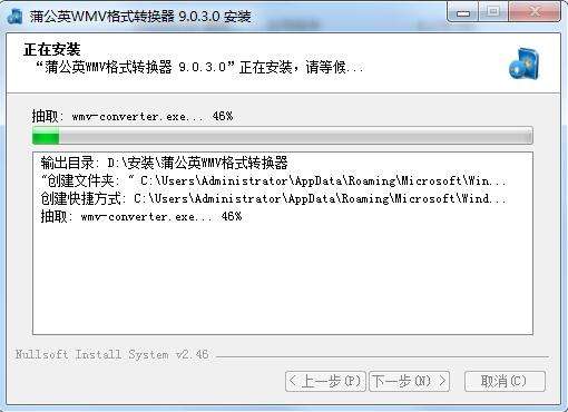 蒲公英WMV格式转换器中文版正在安装,耐心等待一下
