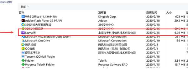 2、进入到程序卸载页面,找到lazywifi软件。
