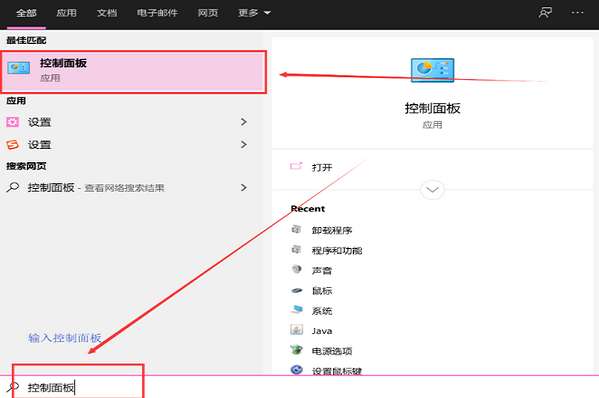 1、点击开始,选择控制面板。