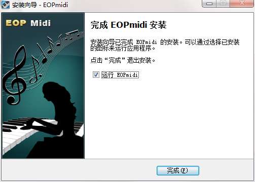 9.点击完成,eop midi软件安装成功