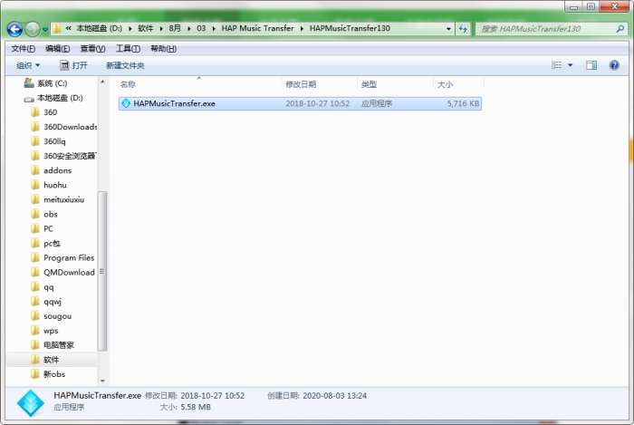 2.解压HAP Music Transfer软件,运行“EXE.文件”