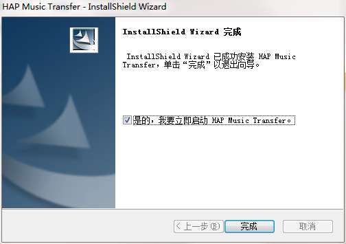 7.点击完成,HAP Music Transfer软件安装成功