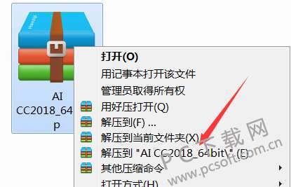 1.右击软件安装包选择解压到AI CC2018_64bit。