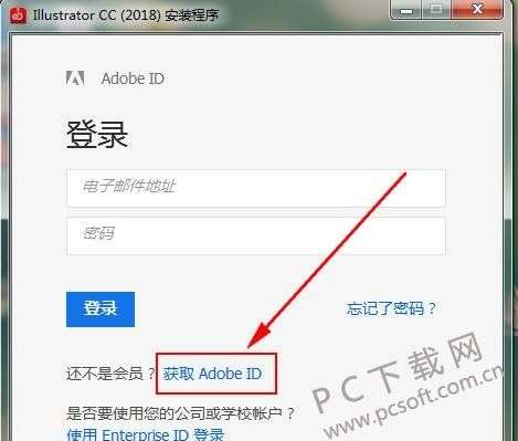 4.首次使用,安装的时候我们需要注册一个账号,点击“获取Adobe ID”;已经有账号的用户可以直接登陆。