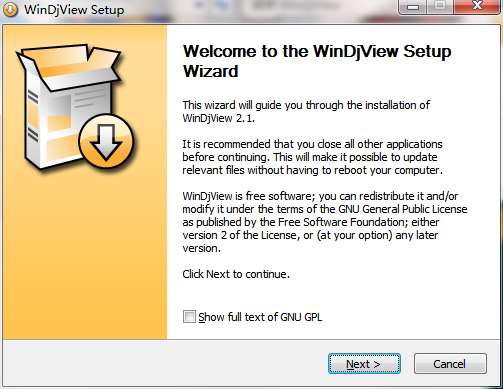 3.双击打开,进入WinDjView软件界面,点击下一步