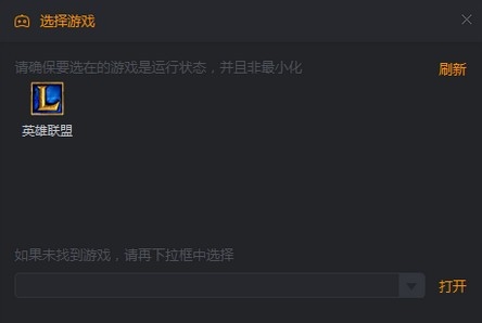 如果没有识别到你当前的游戏,可以在下方的下拉菜单中查找,选中打开即可。