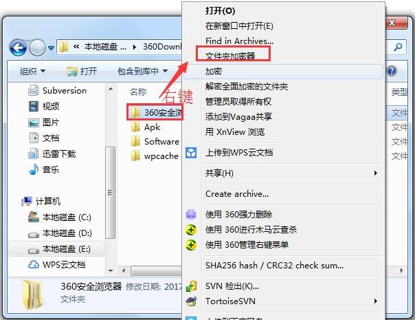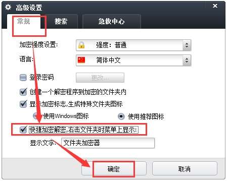 4.右键加密:在高级设置中设置右键菜单后 (点击 高级设置-》选中“快捷加密解密” 选项,再点确定),这时在需要加密的文件夹上 点击右键,选择“文件夹加密”即可