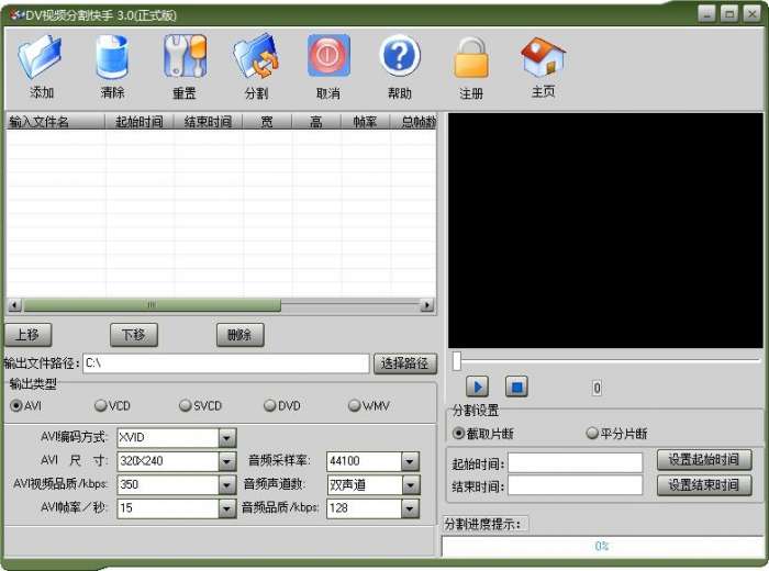 分割输出为AVI、VCD,SVCD,DVD,WMV;