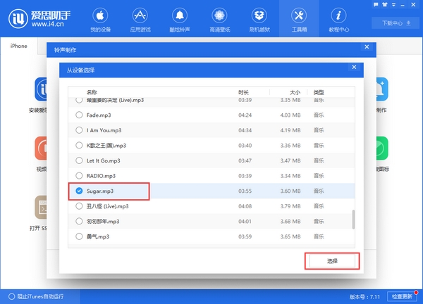 使用爱思助手可以把电脑或者移动设备中的音乐制作成铃声并导入到移动设备中。