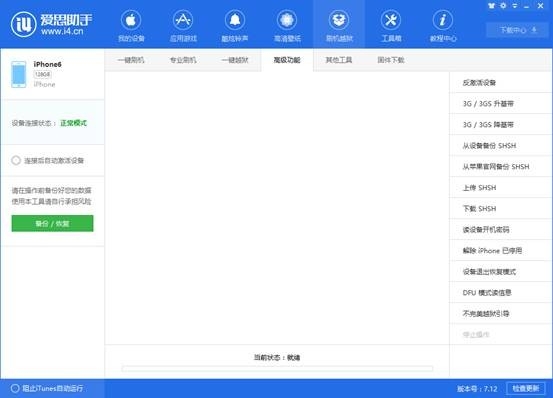 更有反激活设备、升降基带、读设备开机密码、解除iPhone已停用、备份/下载SHSH,开机引导等高级功能。