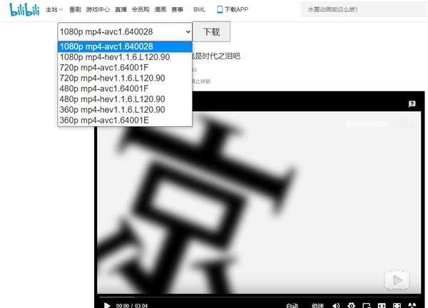 下载视频脚本安装完成后,打开你需要下载的哔哩哔哩视频播放页面,就可以在播放器顶部看到新的下载按钮,选择你需要的清晰度。