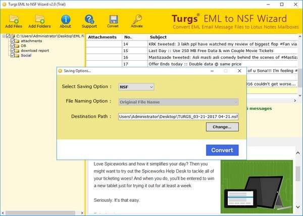 支持所有 EML 电子邮件客户端应用程序将 EML 转换为 NSF。
