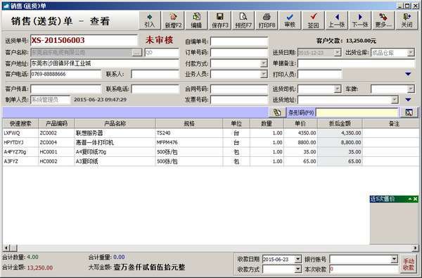 11、支持即录即打功能(不需要先建立客户资料、产品资料就可以开单)。