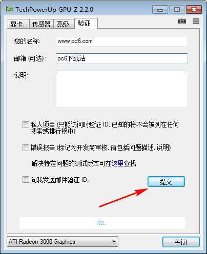 在TechPowerUp GPU-Z的验证中我们可以输入名字、邮箱和评论等,然后点击提交就可以等待gpu-z的验证邮件了。