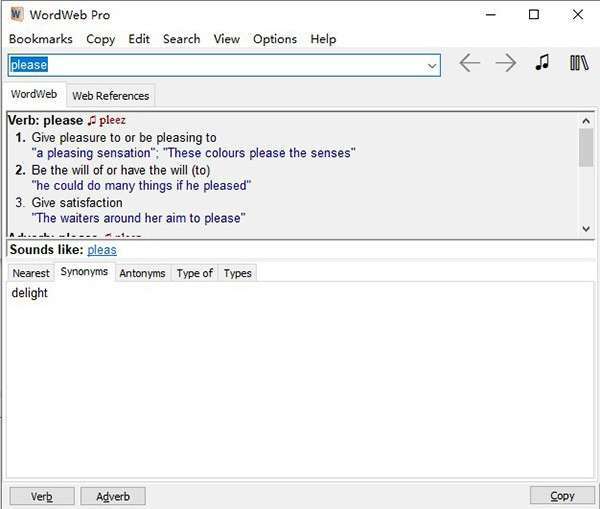 WordWeb Pro(翻译软件)是一款单词翻译软件,WordWeb Pro(翻译软件)可以轻松添加自己的自定义词汇表,快速,智能地找到与模式匹配的单词,软件界面简洁美观,操作简单易上手。