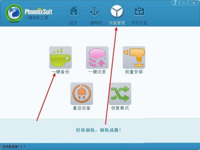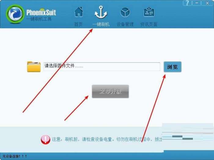 PhoenixSuit是一款非常强大的刷机软件,是专为平板电脑设计的安卓刷机工具,用户界面友好,一键即可进行平板电脑的系统刷机。软件不仅具有刷机功能,还提供一键备份、一键还原,恢复模式、批量安装等功能。
