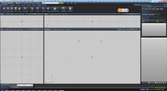 双击ZModeler.exe文件以运行ZModeler。将弹出一个启动屏幕,然后会出现一个配置框。这是在zmodeler启动之前需要您选择的唯一配置,通常,您必须选择硬件适配器(图像上的“硬件@ RADEON 9800”)并将顶点处理模式切换为“硬件”。注意,某些硬件没有实现与ZModeler 100%兼容的所有必需技术,并且“软件”顶点处理模式可能在这种情况下有所帮助。单击OK - 将出现主窗口,ZModeler已准备就绪。
