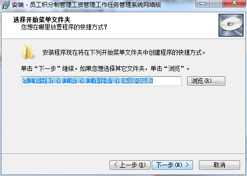 3、选择目标位置,默认为C:Program Files (x86)员工积分制管理工资管理工作任务管理系统网络版,也可以点击浏览修改目标位置,点下一步