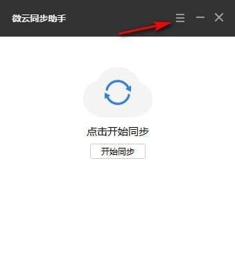 在第一次打开微云同步助手,会自动弹出设置同步文件夹的向导。我们也可以在软件的主界面点击右上角的“主菜单”按钮。