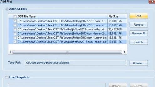 列表视图:列表视图包含选定的ost文件的完整路径,要添加所需的ost文件,您需要选中该OST文件的复选框。