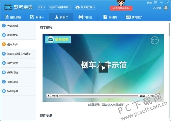 1、先从PC下载网下载并且安装好驾考宝典,双击打开在桌面上的驾考宝典的快捷方式,就可以看到软件的主界面了,在右上角找到“请登录”按钮,点击进入登录框,用户可以使用QQ账户登录也可以使用手机号注册登录,登录后可以使用驾考宝典的完整功能。
