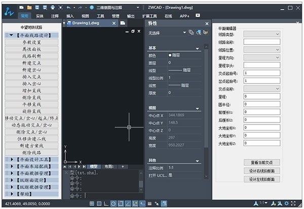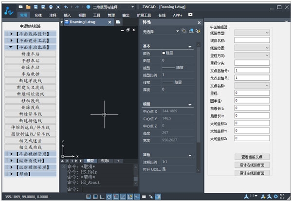 包括缓和曲线生成,里程生成,里程查询,车站生成,渡线设计,停车线设计,断链计算等,并可自动计算曲线要素和标注。