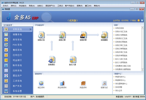 金多A5ERP商业版是一款专门为国内企业打造的erp系统,金多A5ERP商业版为广大用户提供了采购系统、销售系统、库存系统、工资系统等功能,使用金多A5ERP官方版可以帮大家更加方便的管理企业,实现企业业务流程按部门管理划分,科学的流程控制更加适合企业实际业务。