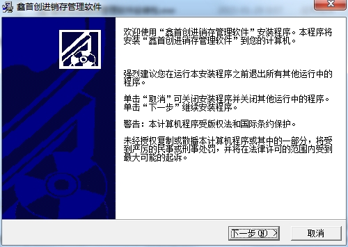 1、在PC下载网下载鑫首创进销存管理软件最新版压缩包,然后进行解压,解压后,双击exe程序,进入安装界面,然后点击下一步