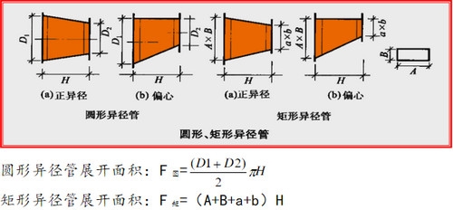 弯管部分展开公式:F2=πd2(h2+h3+0.017453Rθ)