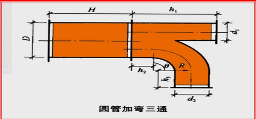 加弯三通分段计算面积,相加即得展开面积,其计算公式如下: