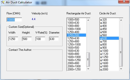 Air Duct Calculator计算公式