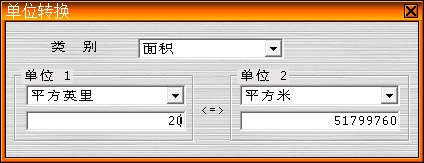 6、输入20英里,点击转换,右边显示平方米的数值