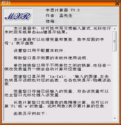 4、在使用宇思计算器之前,你可以打开帮助查看作者对软件的介绍