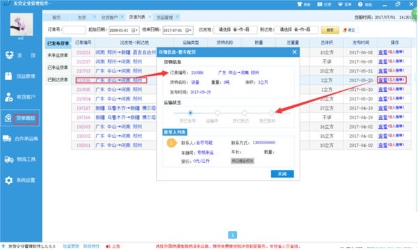 通过物通货单跟踪系统,实时查看接单人信息、运输状态,一目了然